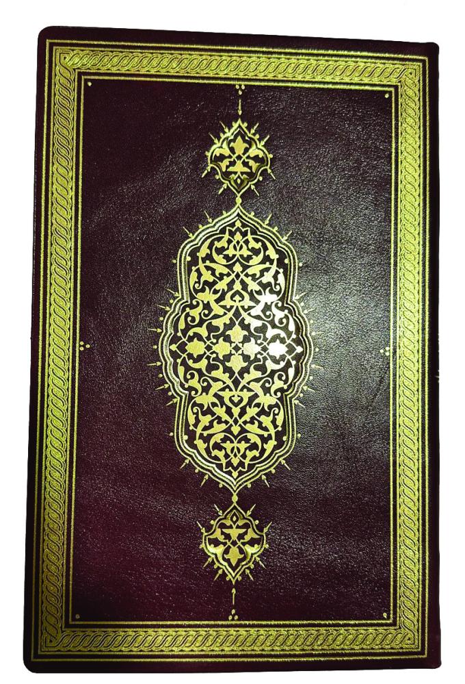 الغلاف : من الجلد الطبيعي مع نقش نباتي غائر وتذهيب رومي