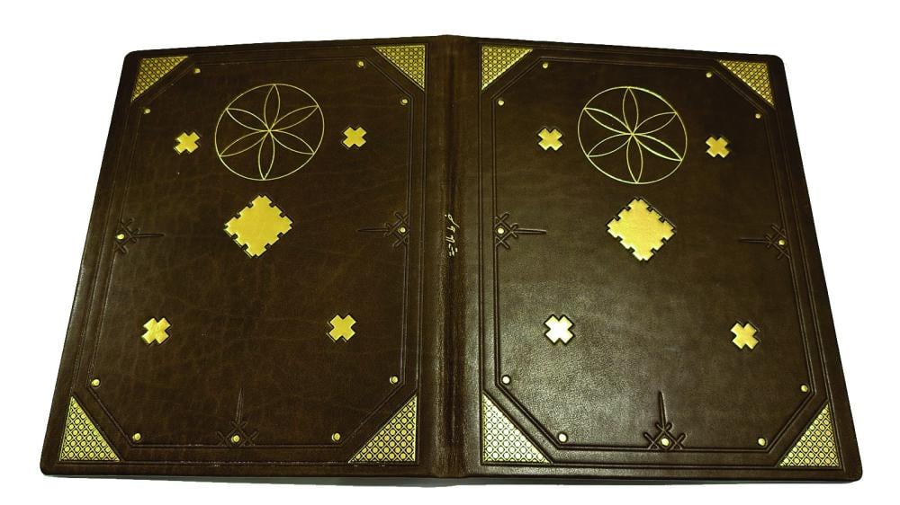 الغلاف : من الجلد الطبيعي بزخرفة بسيطة من الأسلوب الشمال إفريقي